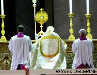 Ce soir, nous sommes rassemblés pour rendre grâce au Seigneur pour le don qu’il nous a fait à travers la personne de Benoit XVI. Il y a en notre coeur ce double sentiment de reconnaissance et de tristesse. Celui-ci est une occasion pour nous de «renouveler votre ferme confiance dans le Seigneur et à nous sentir aimés de Dieu qui nous a montré son amour infini» comme nous y a invité Benoit XVI lors de sa dernière audience publique, ce mercredi.